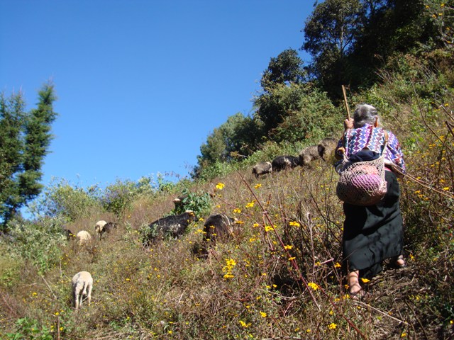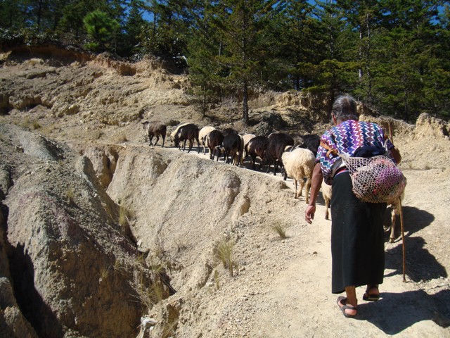 One of my favorite memories from my time in Zinacatan is the day that I climbed the mountain with Doña Juana’s mother. Doña Lupe went up on the mountain every day to take her sheep to pasture. Curious about where she went with them I asked her daughter and granddaughters if I could accompany her one day. That was possible, my friends said, but they warned me that it might be difficult because she did not speak much Spanish, and I had limited Tzotzil.